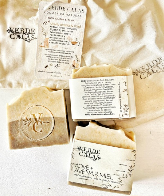 Formulado con esmero para las pieles más sensibles e irritadas, nuestro jabón artesano de AOVE Verde Calas, Avena & Miel es una verdadera joya para el cuidado de tu piel.