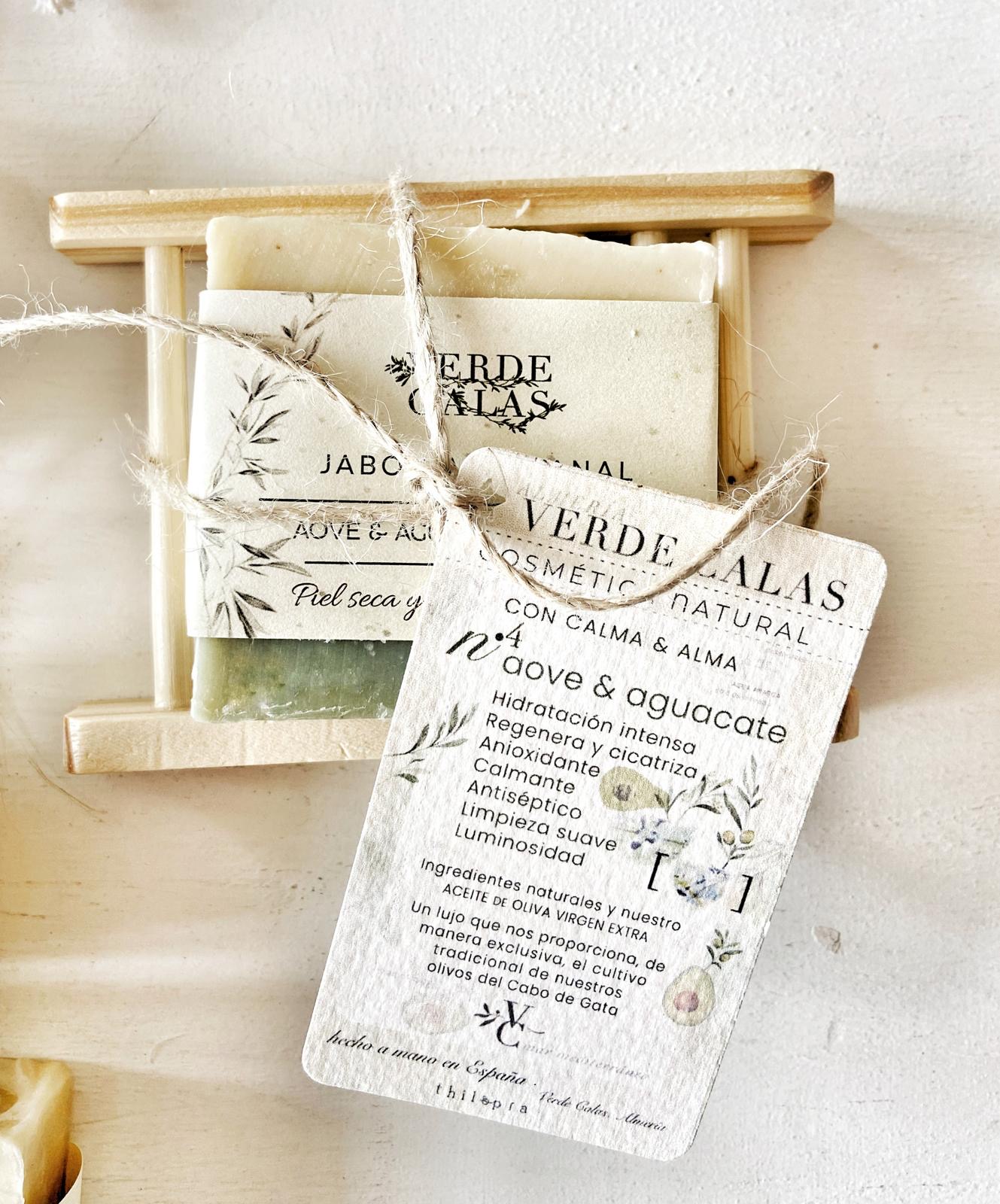 El jabón natural y artesano de AOVE Verde Calas & Aguacate está especialmente indicado para pieles deshidratadas y prematuramente envejecidas o maltratadas.