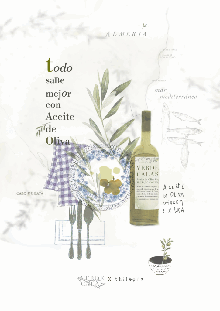 Con las láminas, mi idea era plasmar recetas locales, donde el Aceite de Oliva Virgen Extra fuese un indiscutible protagonista.